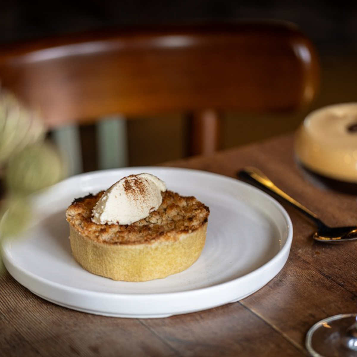 Apple crumble tart, cinnamon cream (v) (ve available) | 6.75 613 kcals