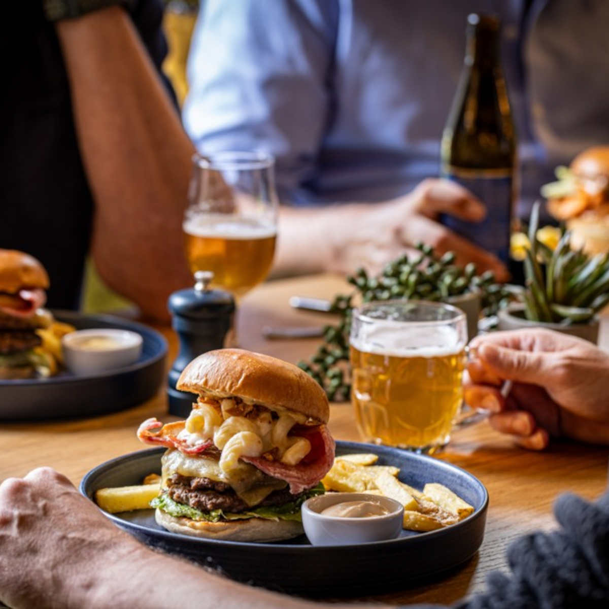 Dirty burger, double burger, streaky bacon, mac & cheese, crispy onions, beef dripping gravy | 16.95 1296 kcals