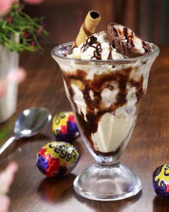 🐣 Easter Special Treat 🐣 Indulge in something sweet this Easter with our delicious Crème Egg Sundae 🍫🍦 Layers of creamy ice cream, chocolatey goodness, and everyone’s favourite Easter treat… what’s not to love? 😍 ✨ Limited time only – don’t miss out! Perfect after your meal or just because you deserve it 😉 📍 Pop in and treat yourself this Easter weekend!